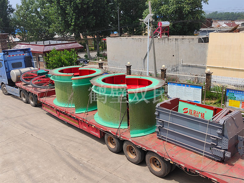 鑿井絞車廠家鶴壁雙民發往新疆的3米雙筒礦井提升機裝車出貨!