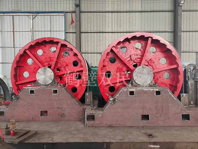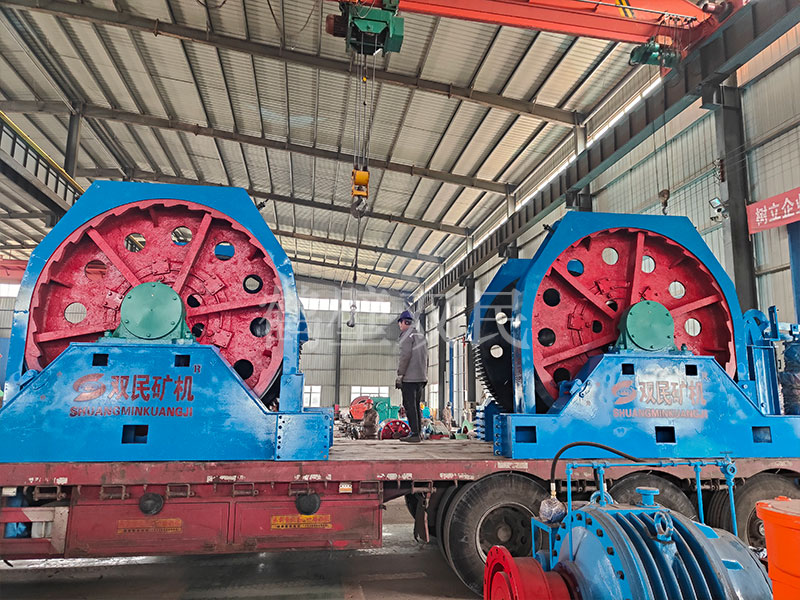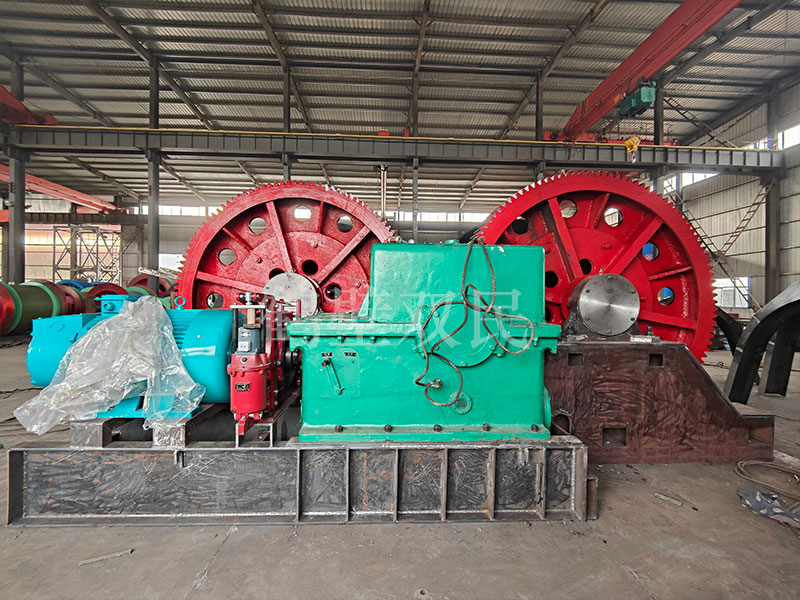 本絞車主要用于煤礦、金屬礦和非金屬礦豎井井筒掘進時懸吊吊盤、水泵、水管、注漿泵、風筒等掘進設備和張緊穩繩,該絞車系雙鋼絲繩懸吊。將減速機上的差動手把放在差動位置,若張緊穩繩,可使兩根穩繩的張緊力保持相等;若懸吊水管、注漿管、風筒等管類設備,可保證其被懸吊管類設備與地面保持垂直的狀態。如果懸吊吊盤等盤狀設備,需將其差動手把放在直通位置,才能實現兩繩繩速的一致。