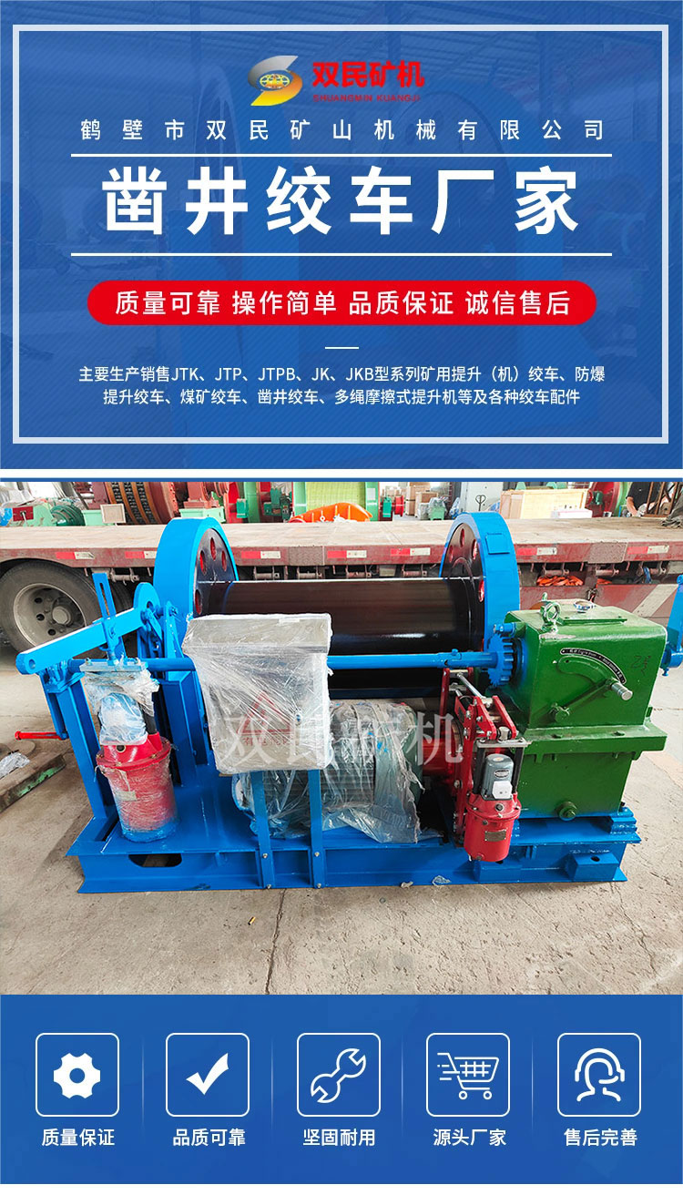 鑿井絞車廠家,以制造大型礦山提升設備,電器成套自動化控制系統(tǒng)為主的科研型高科技企業(yè),是國家礦山專用設備及配件產品定點生產單位。主要生產、銷售JTK、JTP、JTPB、JK、JKB、JKM、JKMD型系列礦用提升絞車、礦井提升機、多繩摩擦式提升機、JZ型