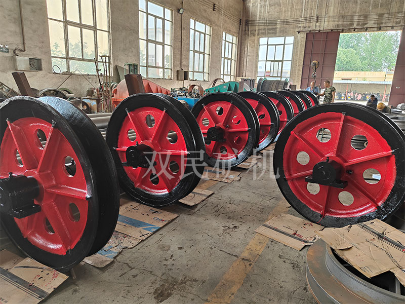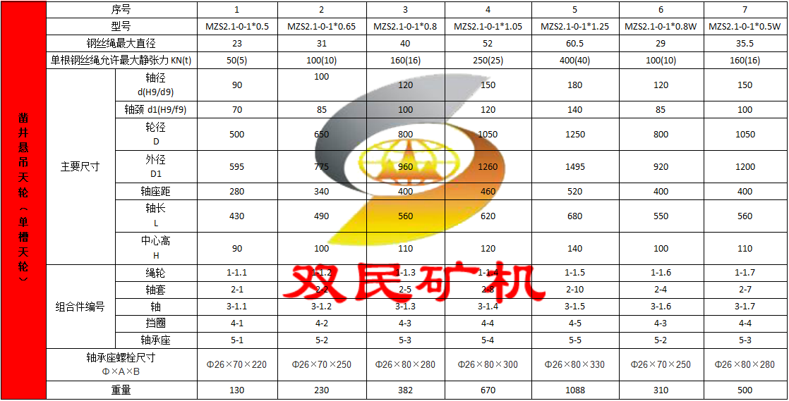 鑿井懸吊天輪是按JZ系列鑿井絞車鋼絲繩最大靜張力分別為5t(50kN),10t(100kN),16t(160kN),25t(250kN),40t(400kN)進行配套設(shè)計的。