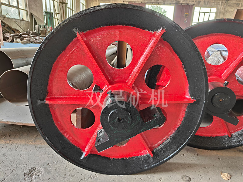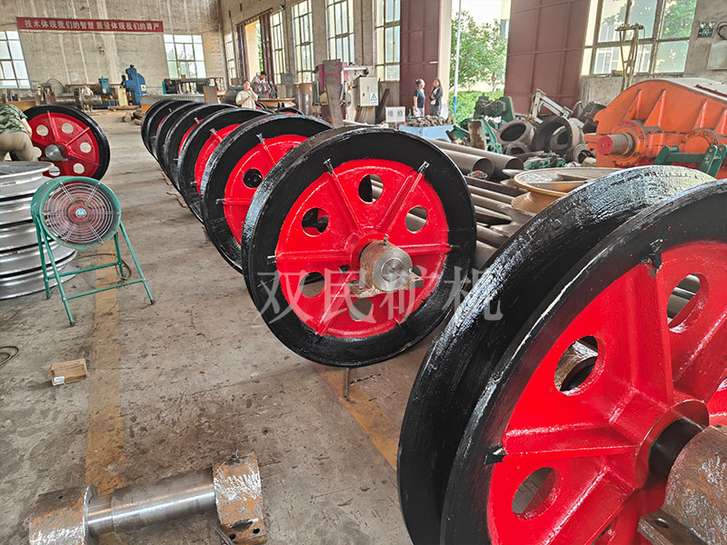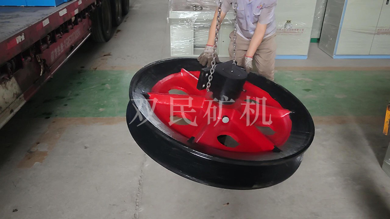 懸吊天輪又按鑿井絞車的性能分為單槽天輪和雙槽天輪兩類,其中單槽天輪七種,雙槽天輪十種。一律采用固定心軸、整體軸承座支承,軸承座和繩輪均采用HT20-40普通鑄鐵。