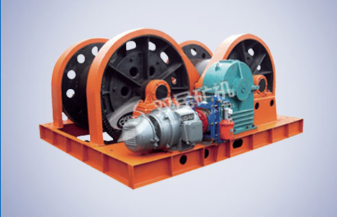 主要結(jié)構(gòu)機(jī)械部分:主軸裝置、減速器、聯(lián)軸器、制動(dòng)器、液壓站、深度指示器及其傳動(dòng)裝置、測(cè)速發(fā)電機(jī)裝置、護(hù)板、護(hù)罩、護(hù)欄。輔助機(jī)械部分:司機(jī)椅子、導(dǎo)向輪和天輪、車(chē)槽裝置。電器部分:主電機(jī)及電氣拖動(dòng)裝置、電器控制裝置、電器保護(hù)裝置。電動(dòng)機(jī)通過(guò)減速器驅(qū)動(dòng)卷?yè)P(yáng)筒旋轉(zhuǎn),鋼絲繩一端固定在卷筒上,另一端經(jīng)卷筒纏繞后,通過(guò)井架天輪懸掛提升容器。隨著卷筒的旋轉(zhuǎn),實(shí)現(xiàn)容器的上升和下放。