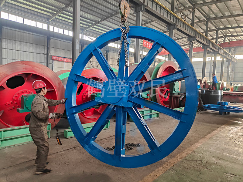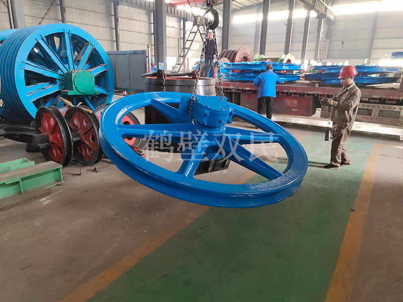 提升天輪主要用于提升煤礦豎井和斜井時,引導(dǎo)絞車與提升船之間鋼絲繩的方向。天輪安裝在井架上,在礦井起吊時,用于支撐絞車卷筒與絞車箱體之間的鋼絲繩和導(dǎo)軌。懸掛式天輪主要用于提升煤礦豎井和斜井時,引導(dǎo)絞車與提升船之間鋼絲繩的方向。天輪安裝在井架上,用于支撐礦井提升機卷筒與提升箱之間的鋼絲繩和導(dǎo)向器。