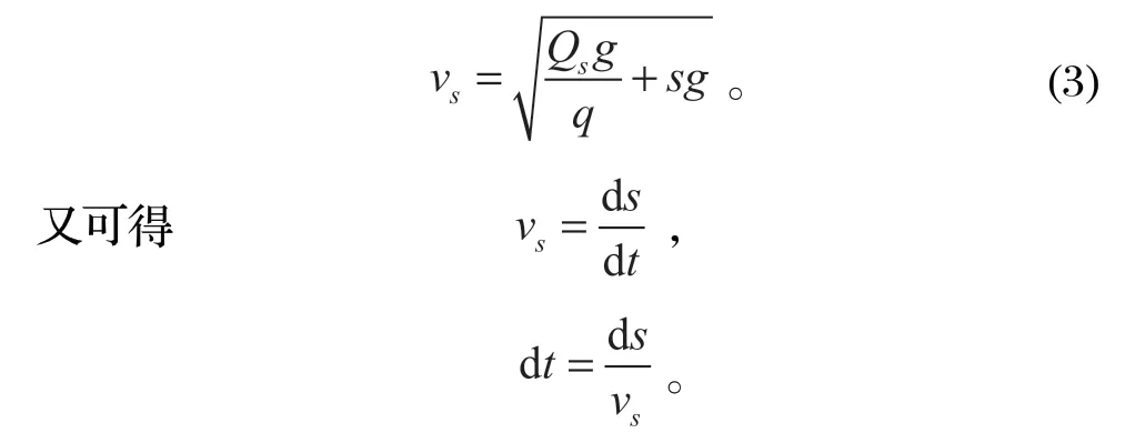 設罐道繩末端所受張力為 Qr,則距罐道繩末端 s處的鋼絲繩張力
