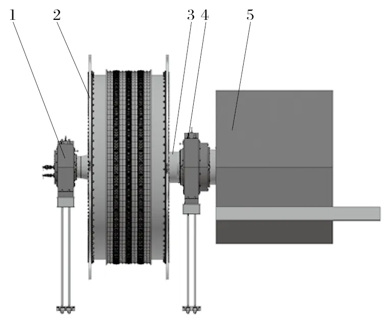 圖1 大型直聯摩擦式提升機的結構及軸承布置