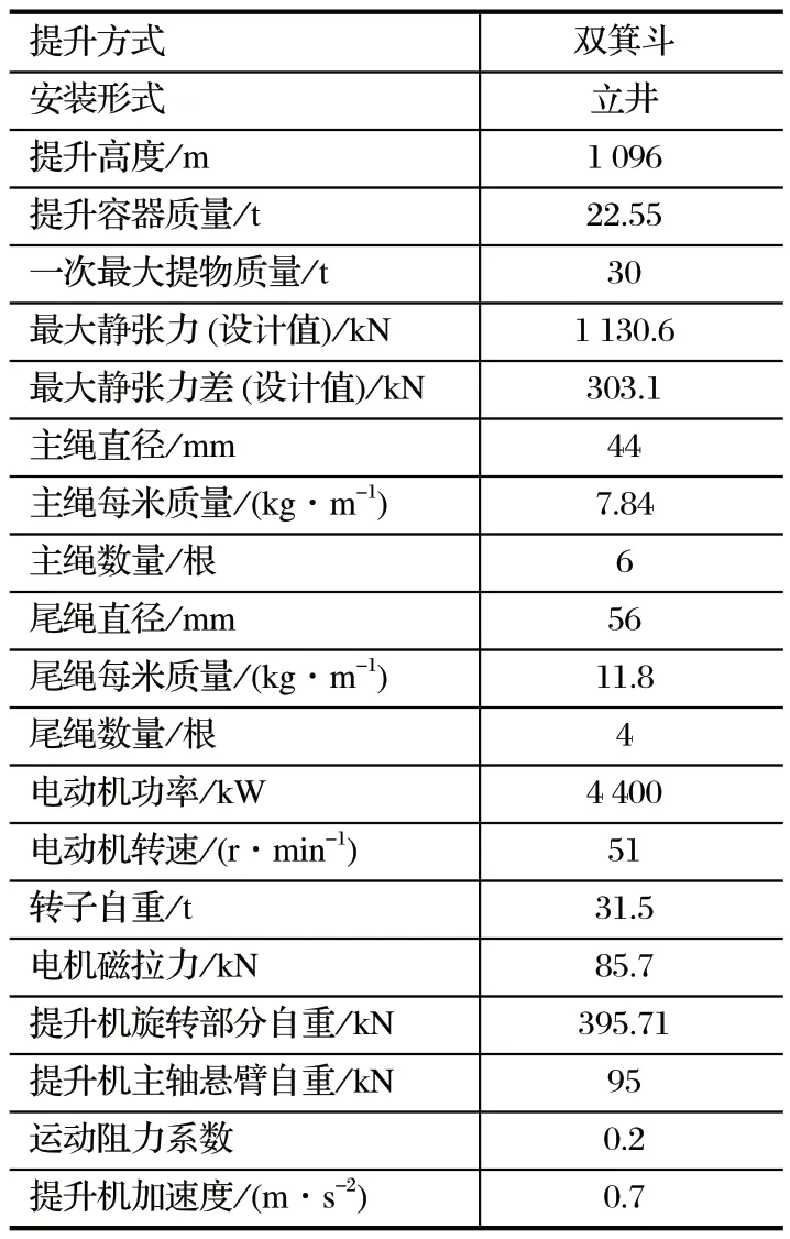 本研究以某礦 JKM-4.5×6PⅢ多繩摩擦式提升機(jī)為例,該提升機(jī)由中信重工機(jī)械股份有限公司設(shè)計(jì)制造,其系統(tǒng)參數(shù)如表1 所列。主軸傳動側(cè)采用 FAG雙列調(diào)心滾子軸承,軸承型號為 240/1060BK30.MB(FAG),軸承當(dāng)量動載荷 Cr=18 600 kN,e =0.27,Y=2.47。