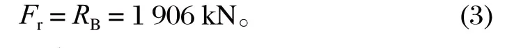 根據(jù)提升機(jī)受力、相關(guān)尺寸及提升系統(tǒng)參數(shù),可以得出:傳動側(cè)軸承處的支反力 RB=1 906 kN,且認(rèn)為支反力 RB 和徑向力 Fr 大小相同,即