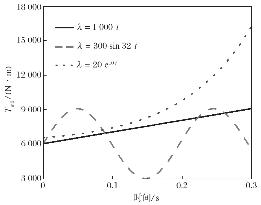 式中:Tm0 為輸出轉(zhuǎn)矩,N·m;Tm 為穩(wěn)定輸出轉(zhuǎn)矩,N·m;Km0 為剛度系數(shù);λ 為波動系數(shù)。