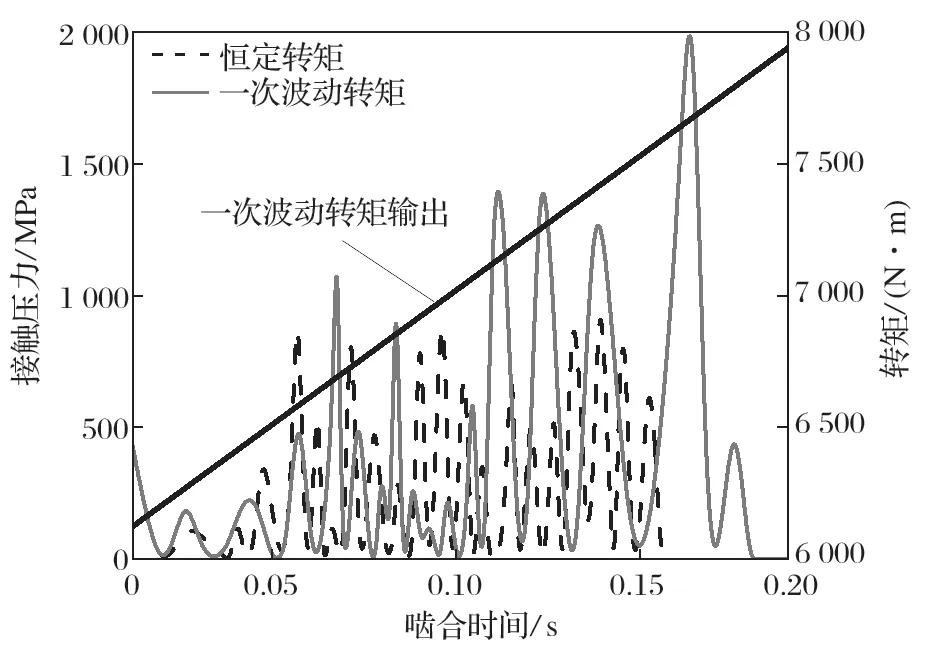 圖9 恒定轉(zhuǎn)矩與一次波動(dòng)轉(zhuǎn)矩接觸壓力的對(duì)比