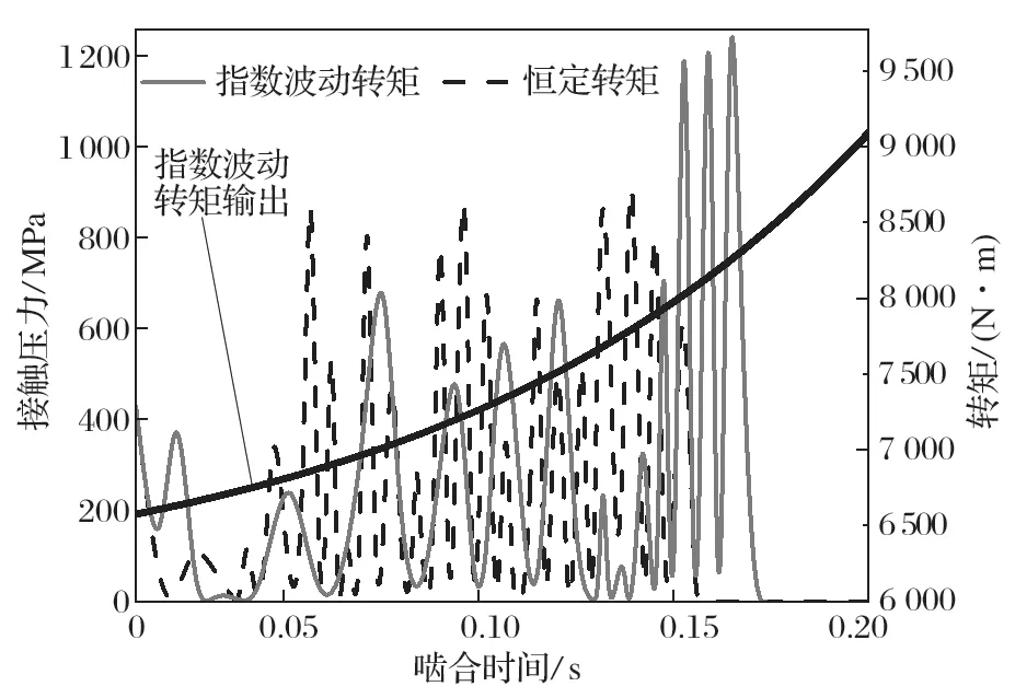 圖11 恒定轉(zhuǎn)矩與指數(shù)波動(dòng)轉(zhuǎn)矩接觸壓力的對(duì)比