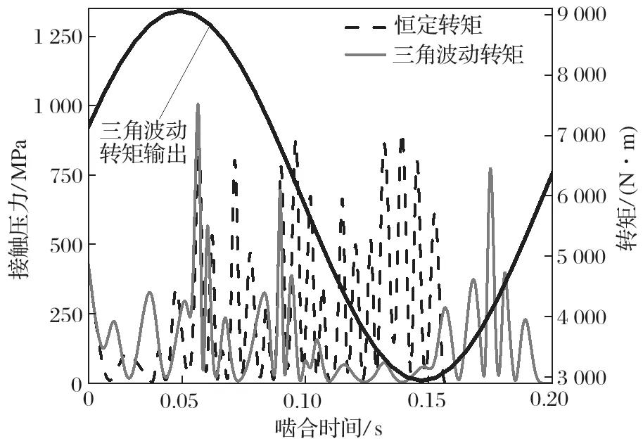 圖10 恒定轉(zhuǎn)矩與三角波動(dòng)轉(zhuǎn)矩接觸壓力的對(duì)比
