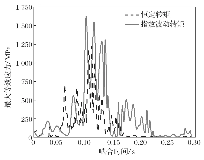 圖14 恒定轉矩與指數波動轉矩zui大等效應力的對比