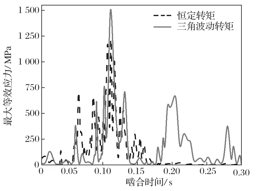 圖13 恒定轉矩與三角波動轉矩zui大等效應力的對比