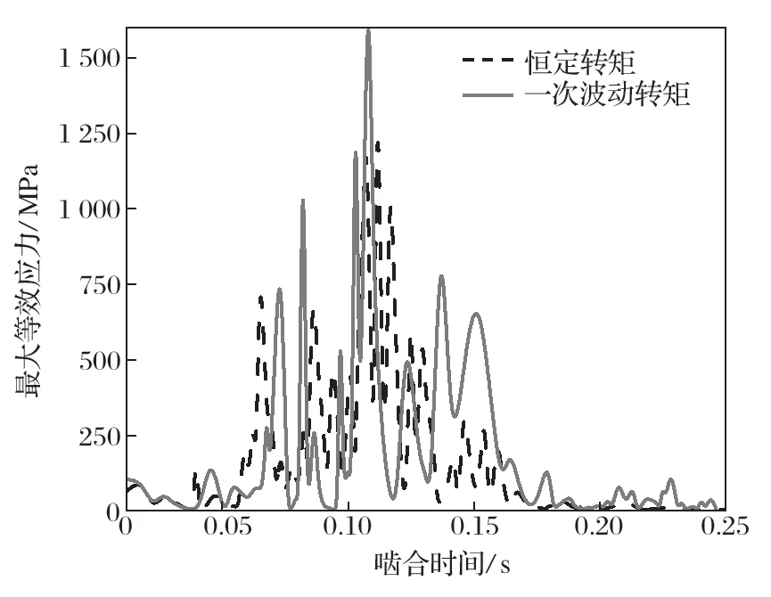 圖12 恒定轉矩與一次波動轉矩zui大等效應力的對比