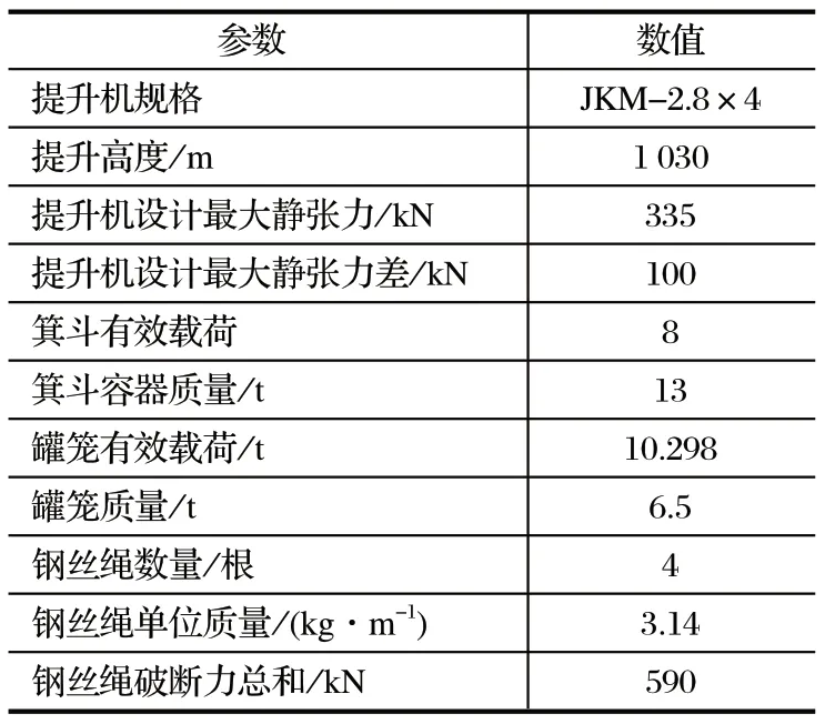 某礦多繩摩擦式提升機參數如表1 所列。